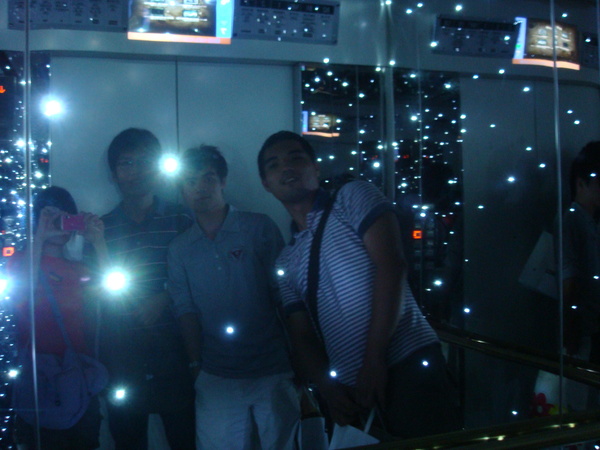 (一開門令我們驚艷的電梯,內裝是黑色鏡面玻璃,搭配白色LED燈,營造出夜間星空的感覺)